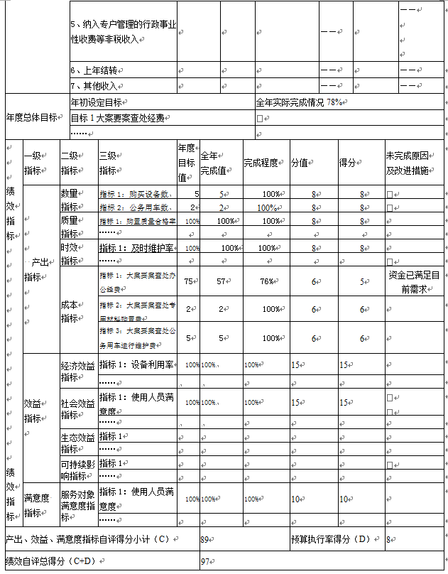 (1)“大案要案查处”项目自评综述:根据年初设定的绩效目标,项目自评得分97分。项目全年预算数为82万元,执行数为64万元,完成预算的78%。项目绩效目标完成情况:案要案查处经费绩效自评总得分97分。产出指标得分49分,效益指标得分30分,满意度指标得分10分,预算资金执行率得分8分。发现的主要问题及原因:财务管理制度执行力度薄弱,财务管理监督措施有待加强。下一步改进措施:加强指导海州区纪委进行资金预算编制及绩效管理分析。