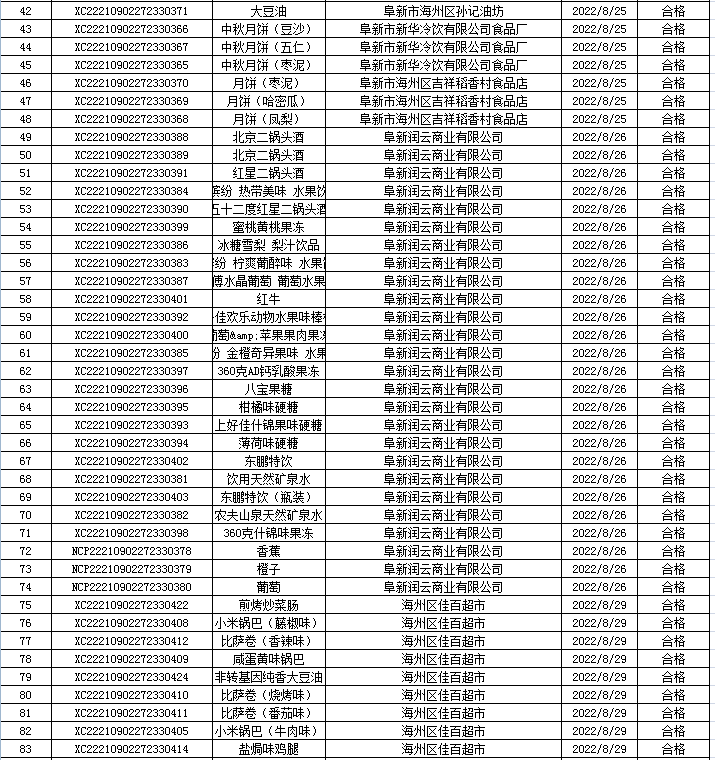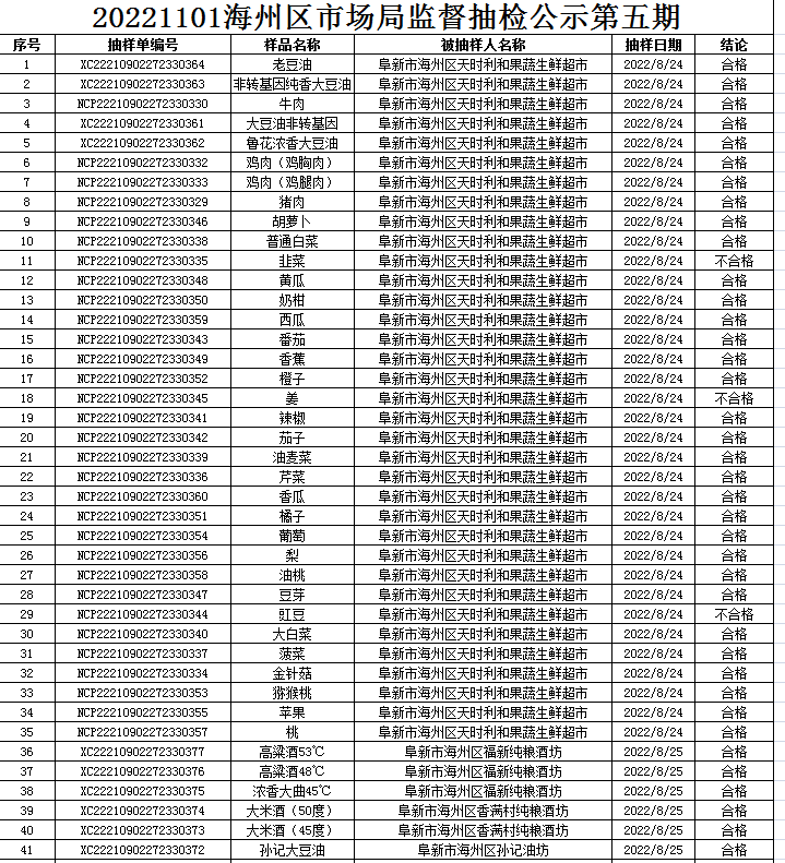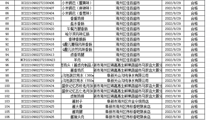 根据《中华人民共和国食品安全法》有关规定,按照省、市、区市场监督管理局相关工作安排,现将我区在2022年7月1日-2022年10月30日组织区级监督抽检(中检)的106批次食品涉及的食用农产品、预包装食品、生产环节食品等3大类食品安全监督抽检信息公布如下: