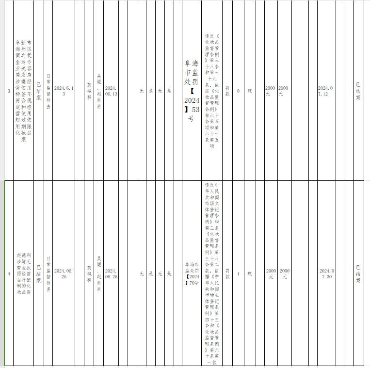 海州区市场局2024年化妆品监管7月份行政处罚案件公示表