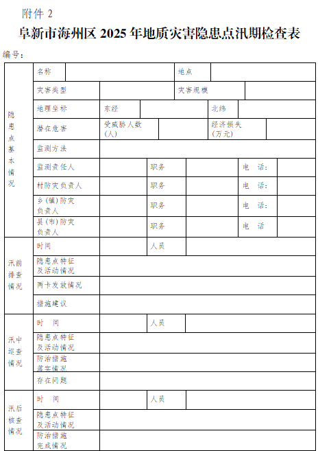 2.阜新市海州区2025年地质灾害隐患点汛期检查表
