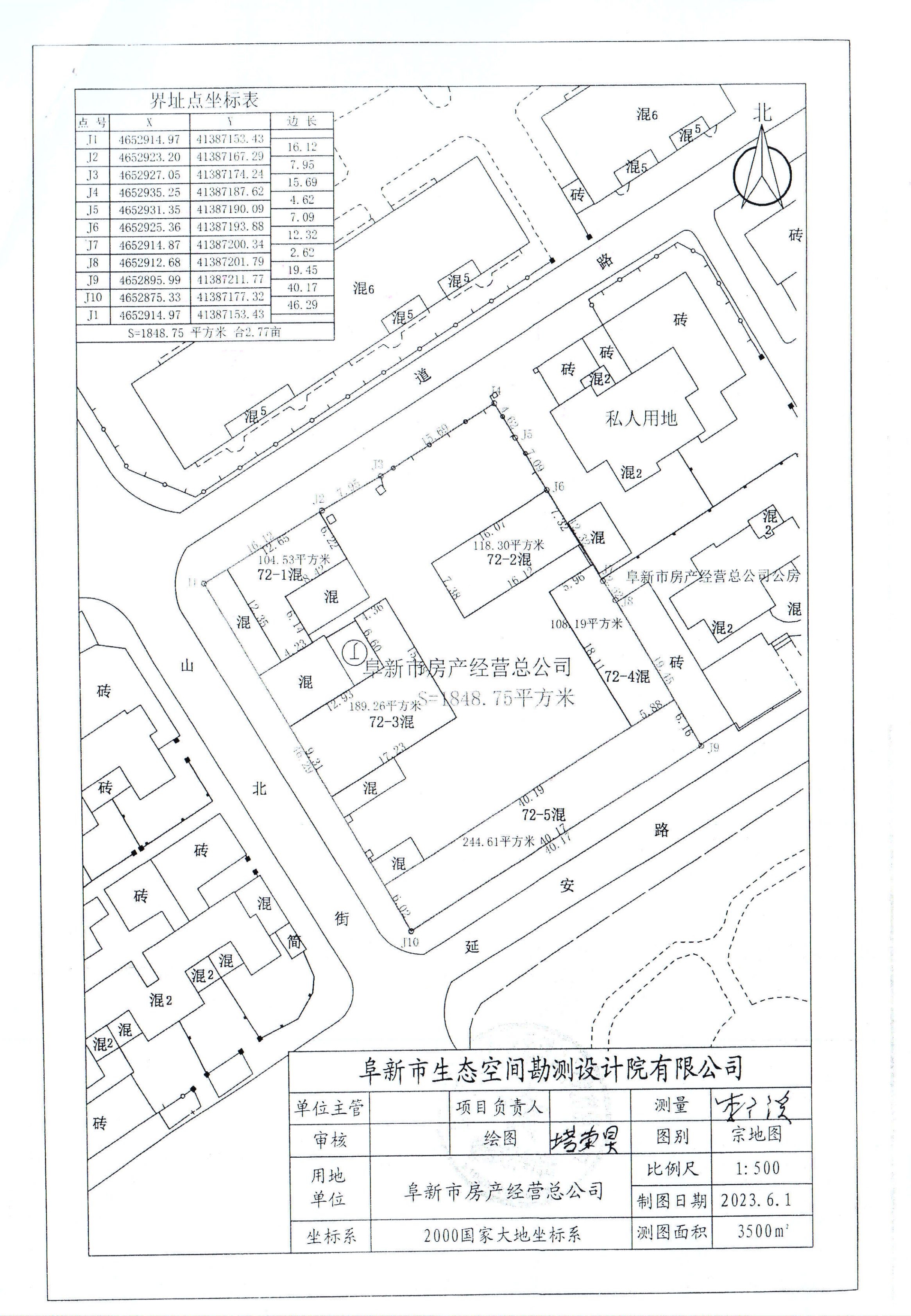 阜新市房产经营总公司 | 国有划拨土地 | 公用设施营业网点用地 | 海州区山北街72号 | 1848.75m² | 北邻道路;东邻住宅、阜新市房产经营总公司公房;南邻延安路;西邻山北街 | 详见附图 |