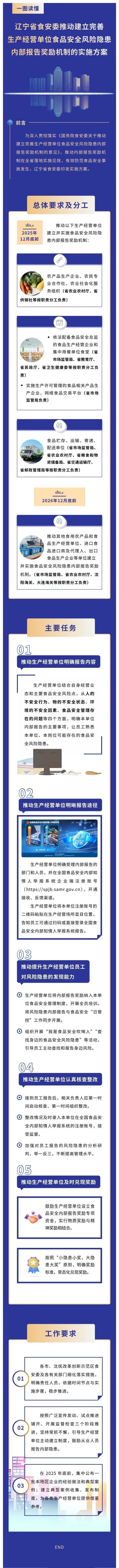 一图读懂丨辽宁省食安委推动建立完善生产经营单位食品安全风险隐患内部报告奖励机制的实施方案